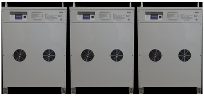 Трехфазные комплекты собираются из трех однофазных стабилизаторов, организующих трехфазную сеть по схеме «звезда». При этом комплекты мощностью от 15 кВА до 45 кВА могут быть смонтированы на удобной и функциональной вертикальной стойке (приобретается отдельно). По желанию заказчика стойки могут комплектоваться ручным байпасом и контролем трехфазного выхода, либо обеими функциями одновременно.