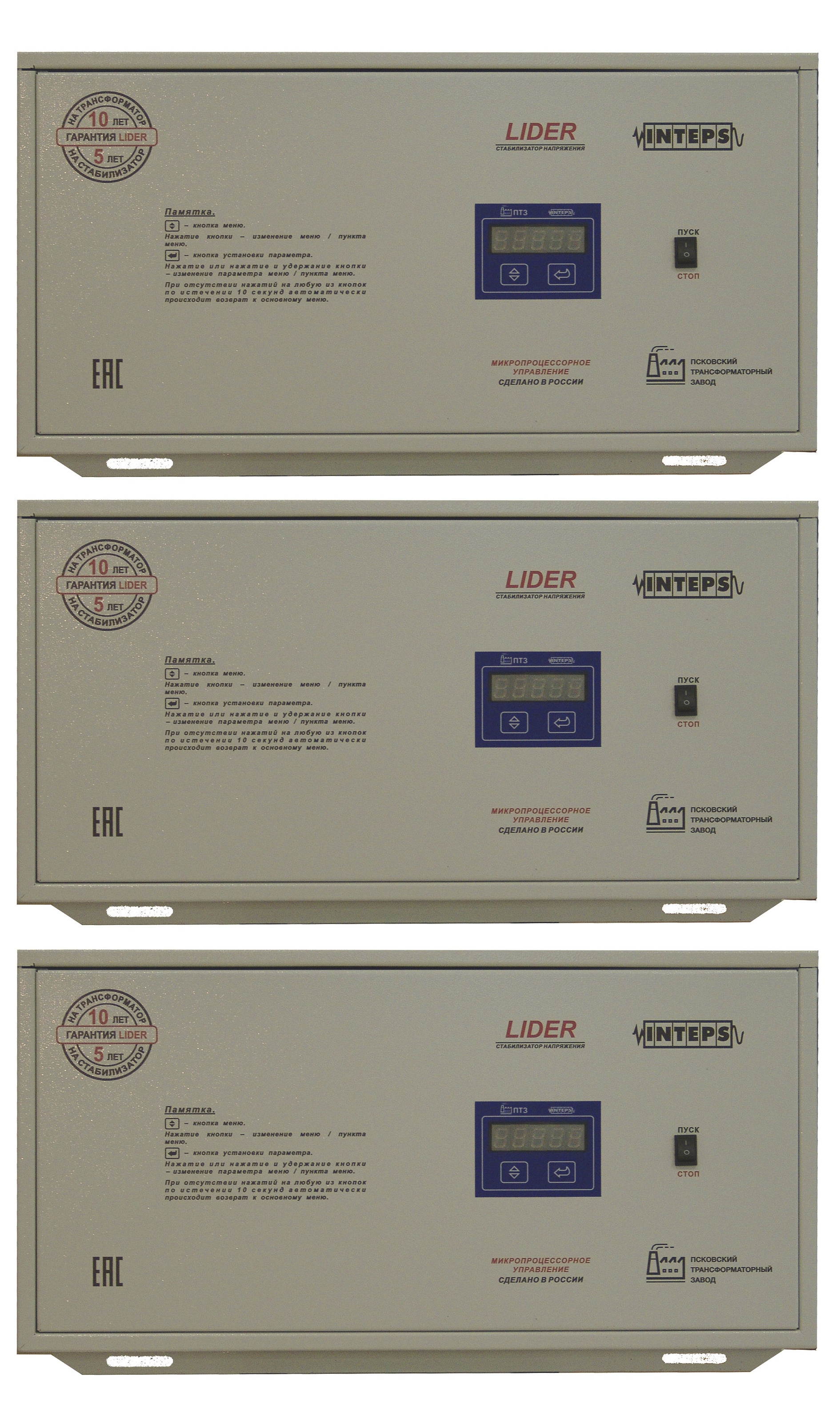 Цена складывается из стоимости 3-х однофазных стабилизаторов без опций.